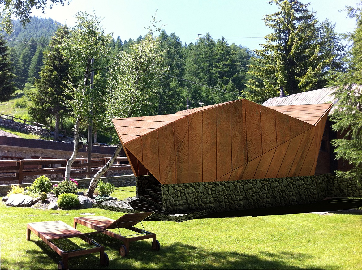 Progetto preliminare di Ampliamento di chalet in Val Chisone (To) con visualizzazione virtuale dell'intervento.